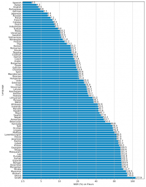 Figure 4. Whisper's WER as a function of language. Source: OpenAI.